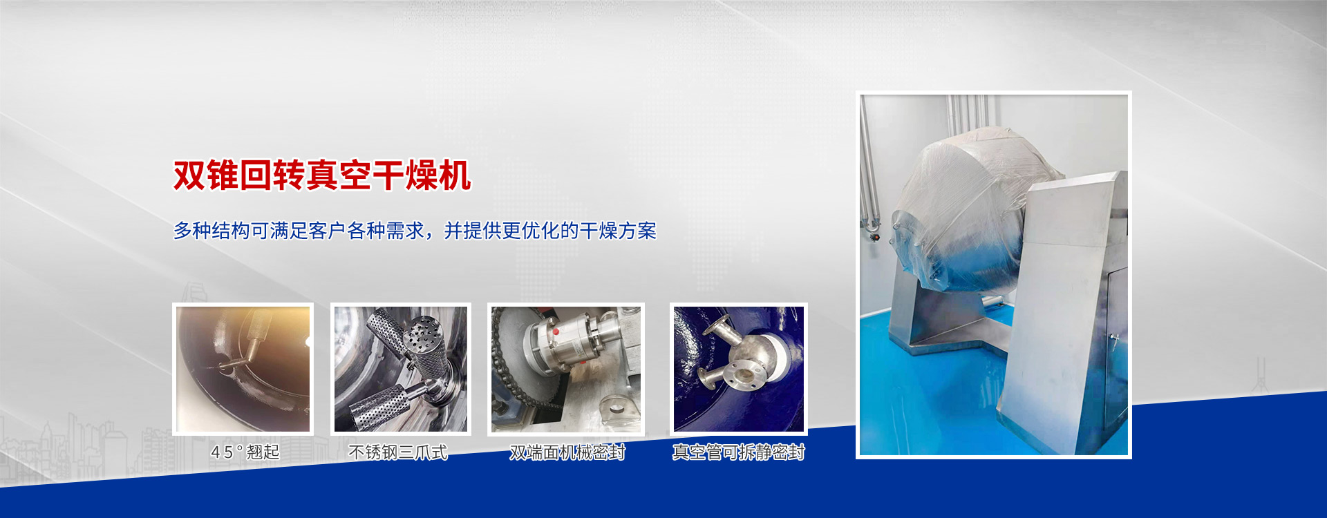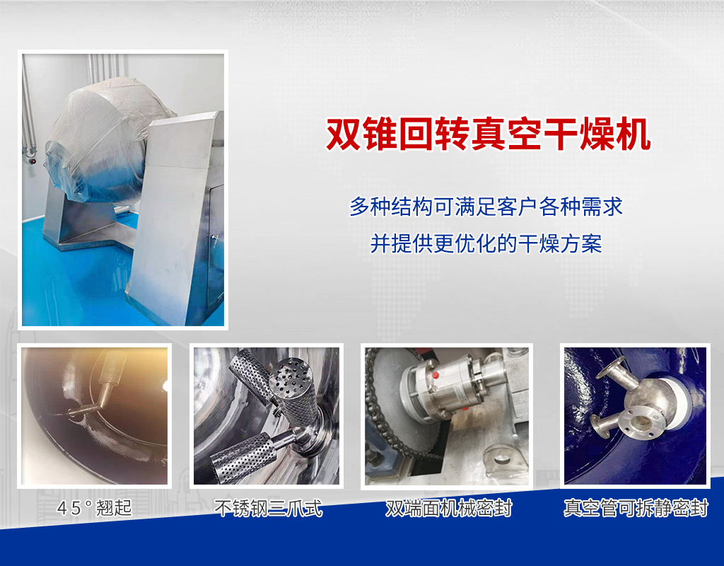双锥回转真空干燥机是一种集混合、真空干燥于一体的新型干燥设备,广泛应用于制药、化工、食品、染料等行业,以下是对其详细介绍:一、工作原理在密闭的夹层中通入热能源(如热水、低压蒸汽或导热油),热量…